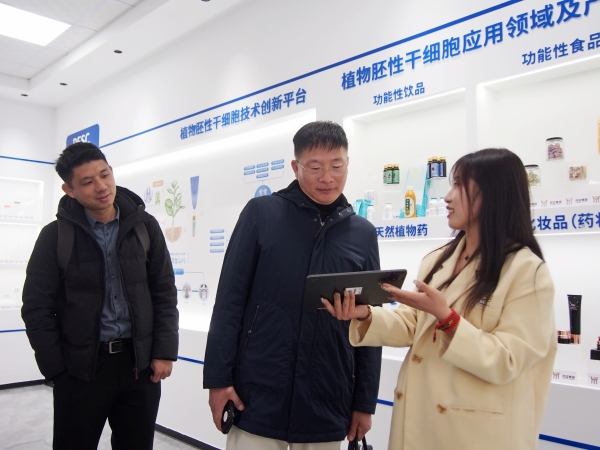 在财务中心认真人刘子豪的陪同下 ,来访团一行旅行了集团声誉墙与展厅 ,实地考察了必威官方首页官网集团的研发中心 ,先后旅行了植物胚性干细胞库、植物胚性干细胞种苗工程研究室、功效基因研究室、人工种子研究室、干细胞饮品研发实验室、医学磨练实验室、双PCR实验室等。
